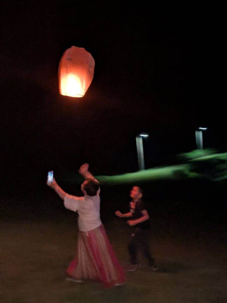 穿著漢服、走山、採野菜、與山水田園生活體驗,夜晚放天灯